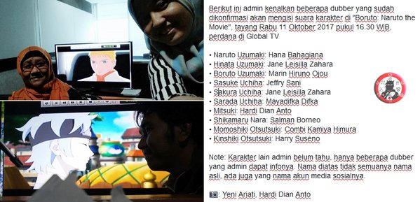 Dubber naruto di indonesia jadi sorotan pengisi suara asli jepang. Mengenal komunitas dubbing indonesia tempoco jakarta belasan tahun lalu margaretha kecil hanyut menyaksikan sinichi kudo membongkar kasus pelik di depan televisi yang memutar animasi kegemarannya. Kali ini kami akan membawa kamu berkenalan dengan para dubber indonesia yang telah menyumbangkan suaranya untuk karakter karakter dalam anime naruto karena kami yakin kamu.